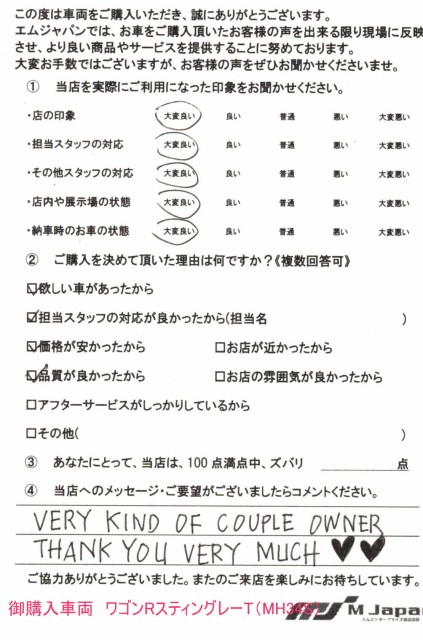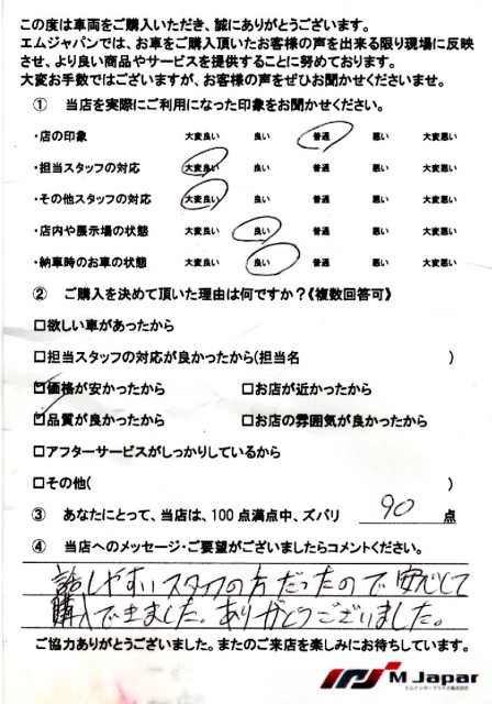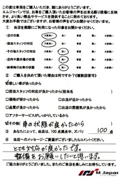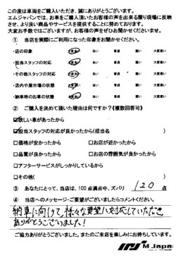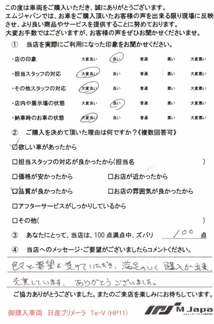 個性あふれるマーチを購入してくれたマツムラさんからの